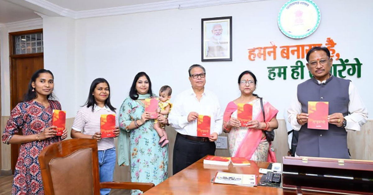 रायपुर। सीएम साय ने रायपुर स्थित निवास कार्यालय में आज जशपुर की साहित्यकार शुभा मिश्रा के काव्य संग्रह ‘अंबुबाची’ का विमोचन किया। उन्होंने कहा, मिश्रा को इस नवीन काव्य संग्रह के प्रकाशन पर हार्दिक बधाई एवं शुभकामनाएं। उनके सृजन की यह यात्रा निरंतर आगे बढ़ती रहे।