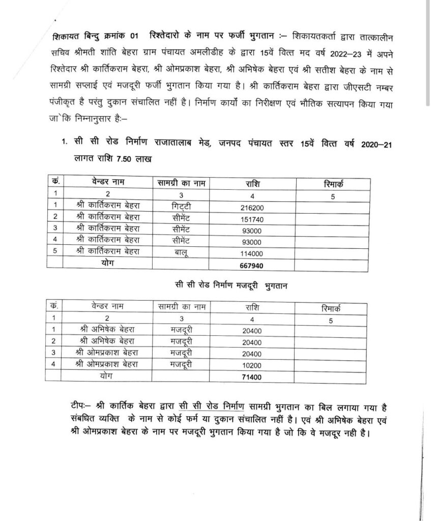 मामला तब शुरू हुआ जब जिला कलेक्टर साहब के जनदर्शन में अमलीडीह के तत्कालीन सचिव शांति बेहरा पर ब्यापक आर्थिक अनियमितताओं की शिकायत दर्ज हुई। कलेक्टर ने जांच के आदेश दिए जांच टीम ने मेहनत कर जाँच के लिए कागज भरे सूची बनाई और यहीं से कहानी रोचक हो गई।